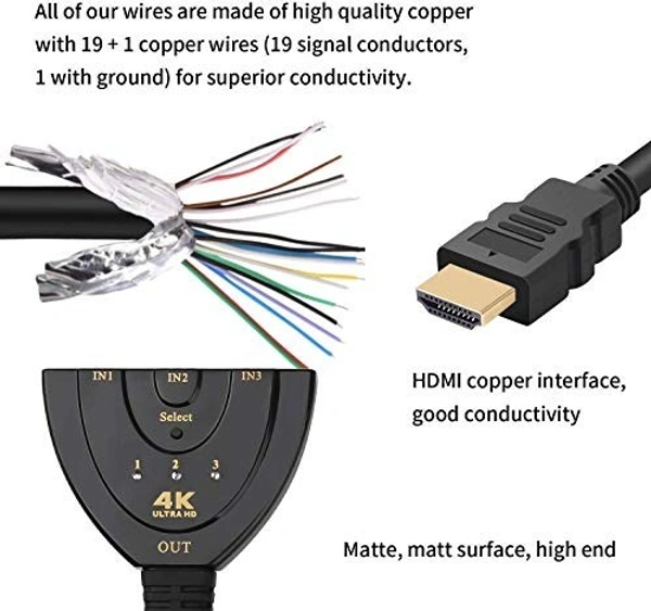 - 3-Port Functionality: Connect up to three HDMI devices such as gaming consoles, Blu-ray players, streaming devices, and more to a single TV or monitor.