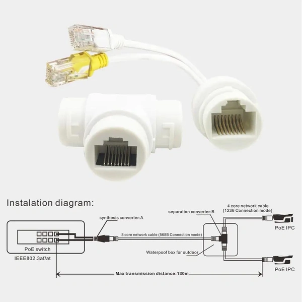 - Seamless Connectivity: Efficiently splits a single PoE source into distinct power and data outputs for multiple devices, eliminating the need for additional power supplies or adapters.