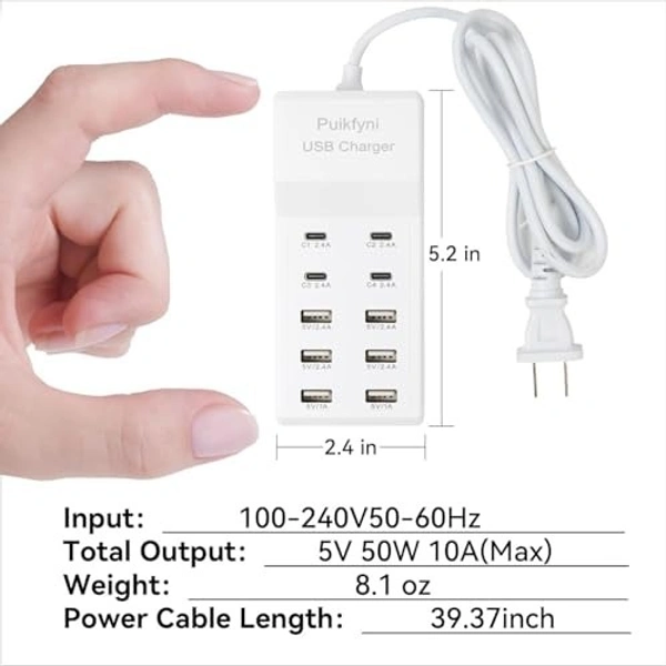 - 10 High-Speed Ports: Charge up to 10 devices simultaneously without compromising on speed or performance.