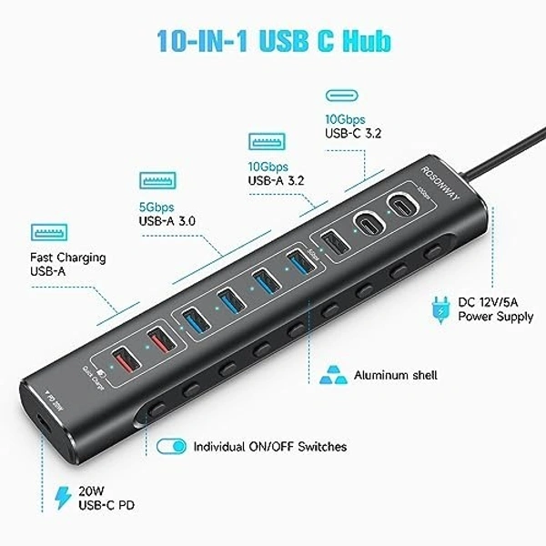 With its 10 high-speed USB ports, you can effortlessly connect and power all your essential devices in one place—no more juggling cables or running out of ports when you need them most!